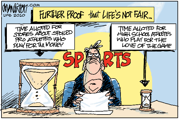 Maybe it’s just me, or the market I live in (Denver) but it pains me to see so little importance and air time given to high school sports. I wish, sometimes, the coverage was the other way around.