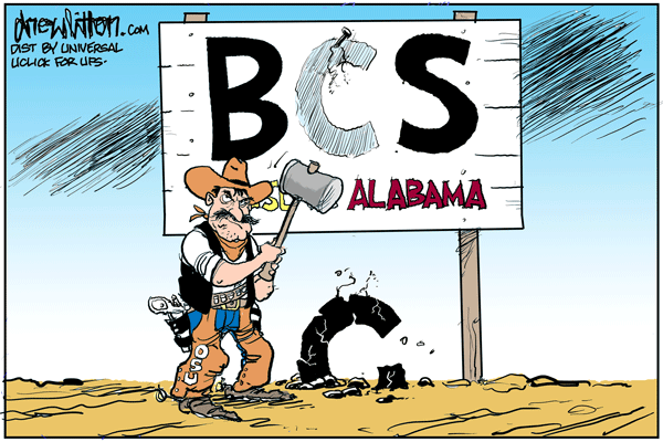 Hey, I’m with you — I would much rather have seen LSU play Oklahoma State. But the bottom line is that we’re NOT getting a playoff anytime soon. We can talk (and type) until we’re blue in the face, but it’s just not going to happen because the money involved in the bowls is too lucrative to give up. So in lieu of a playoff system, the BCS is the best thing we’ve got, and it’s certainly an improvement over the old bowl affiliation system under which LSU wouldn’t play either Oklahoma State or Alabama — LSU would be in the Sugar Bowl, Oklahoma State would be in the Orange Bowl, and Alabama would end up in the Peach Bowl or Sun Bowl or something. At least a Tigers/Crimson Tide rematch has some intrigue.