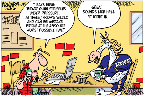 Also, the Toon is really funny, but I posted it on Facebook(http://www.facebook.com/photo.php?pid=4658114&id=153515339001) And nobody like it! Eeeks. Card core Bronco fans are kinda serious sometimes, they said it “sucked”! But no worry, they love’d all the other one’s I posted in the past… Keep up the great work, Go Broncos! =)