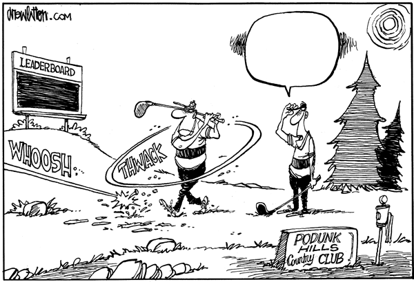 1.Yep this must be Podunk hills COUNTRY club. Where else can you podunk a shot off a halo.