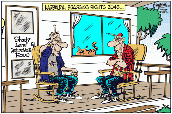 The Harbaughs have been featured a couple of times on HBO Real Sports and they freely admit that they have been competitive since day one in all they do with each other. Being NFL head coaches is just going to continue their rivalry but in a more open environment which should be fun to watch – John 2 / Jim 0.
