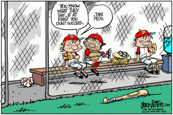 your cartoon brings out a sad but true representation of life as a high school athlete. Even here in the big O, why should we be any different, HS kids playing football have been using PED’s.