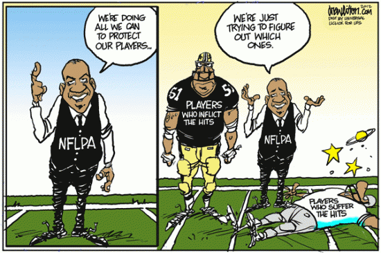 The NFL and NFLPA remind me so much of the much vaunted “self-regulatory organizations” such as FINRA (stockbrokers) or State Bar Associations (attorneys). They do an excellent job of collecting fees, issuing regulations, and weeding out the worst of the worst. Between these three functions is a huge blackhole where massive injuries occur.