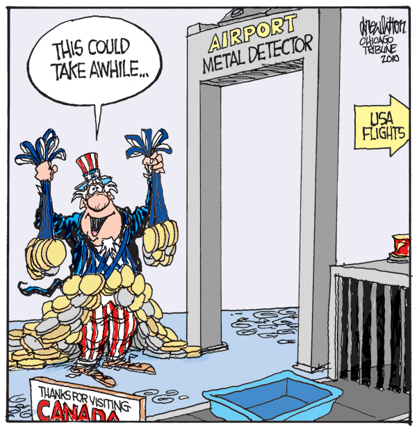 Wow! What a finish in Vancouver! The hockey game was amazing and, I’m sure, left Joe Sakic very happy. The rest of us Americans, not so much. Valiant effort by the USA regardless. And Ryan Miller was Patrick Roy Incredible! Still personally more than disappointed that RUSH didn’t play the closing ceremonies. But, hey we all had our letdowns. I know for sure I won’t miss hearing Lindsey Vonn 24 hours a day. A big Thanks to the Chicago Tribune for making it possible to do so many Olympic cartoons. I had a blast!