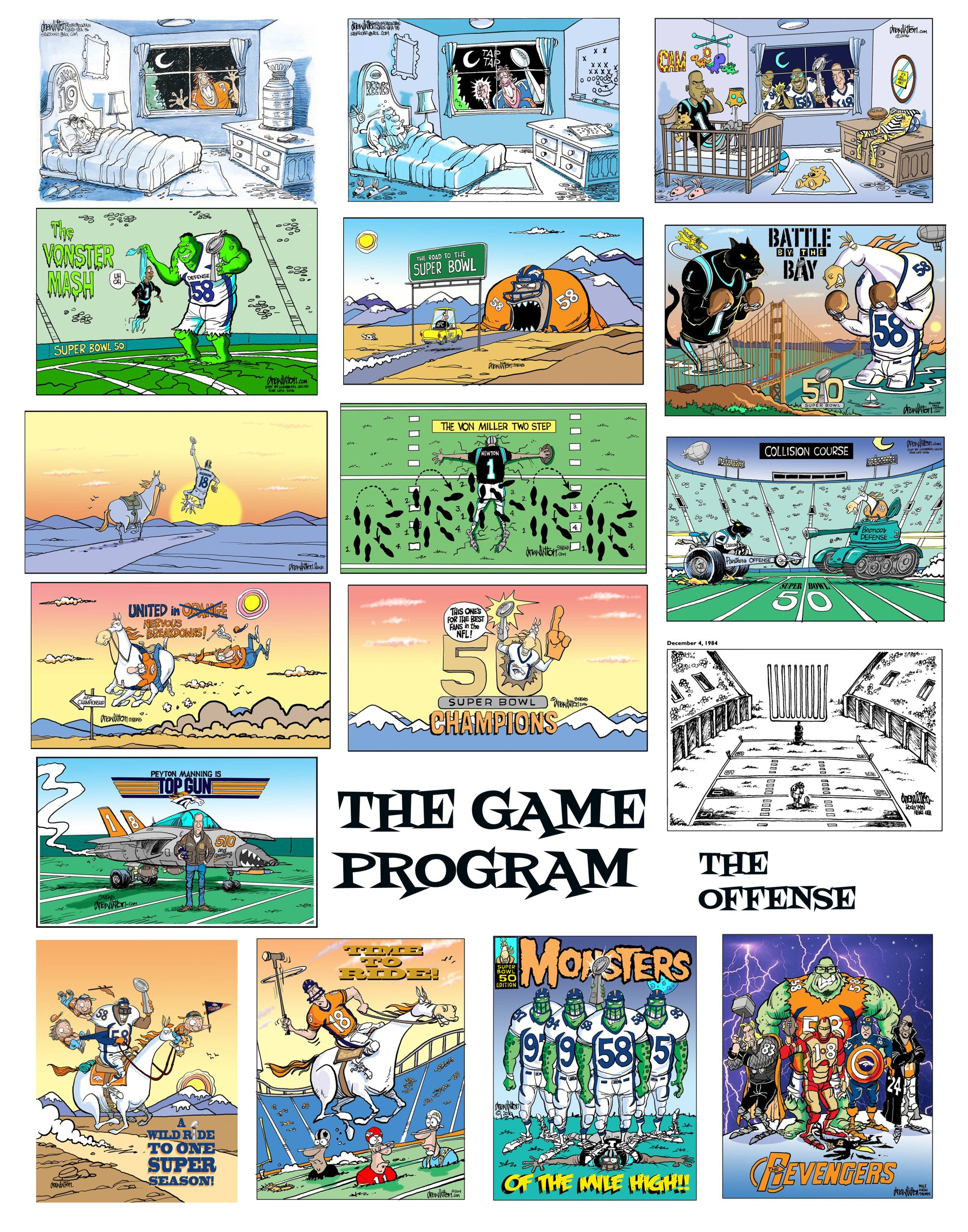 Here are just a few samples of my work. You’ll find Magazine Covers, Posters and Daily cartoons that were featured in various publications throughout the years. I’ve been featured in the Rocky Mountain News, (for 27 years) KUSA Denver 9News (for 15 years), coloradosun.com, ESPN.com, The Chicago Tribune, WGN TV Chicago, Mile High Sports Magazine, Broncos for Kids Magazine, The Colorado Rockies Game Day Magazine, The Boulder Daily Camera, The Colorado Springs Gazette, The Sporting News, Sports Ilustrated, The Guadalupe County Communicator and the El Paso Times. I’m syndicated two times a week by Andrews McMeel.