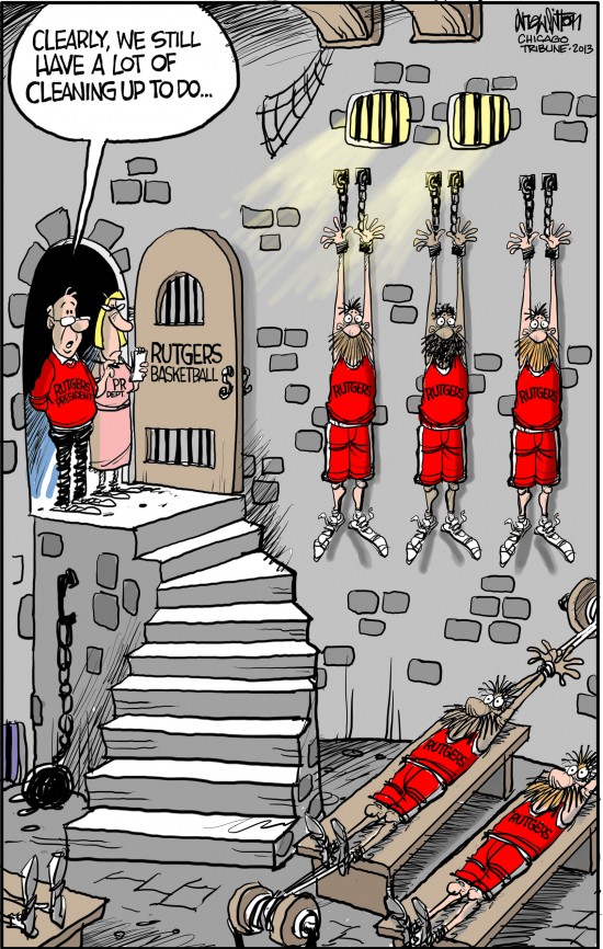 The first thoughts that popped into my head when I read the news about Rutgers were, “Mike Rice is no different, or better, than Jerry Sandusky,” and “Oh man, it’s just like Penn State all over again.”
