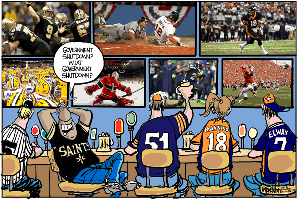 Even Howie Long used his platform on fox sports to complain that because of the government shut down the armed forces network would not be showing NFL football to our troops on sunday. there was also the threat of no game between the air force and navy(?) last weekend.