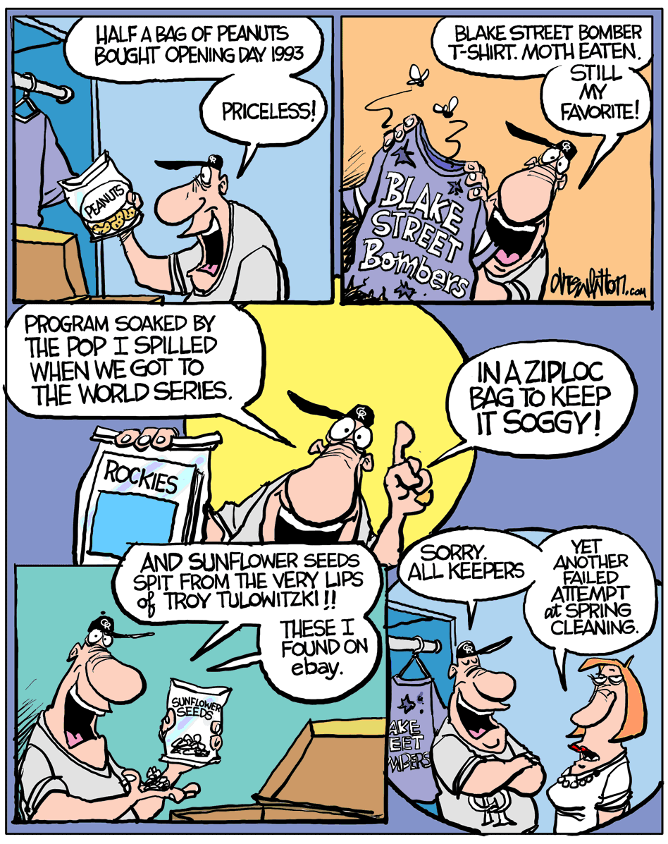 I love drawing these kinds of cartoons for the Colorado Rockies magazine. This one is featured in the April edition available now at Coors Field, Rockies Dugout stores and throughout the Denver metro area. I think you can even find a copy or two at DIA.