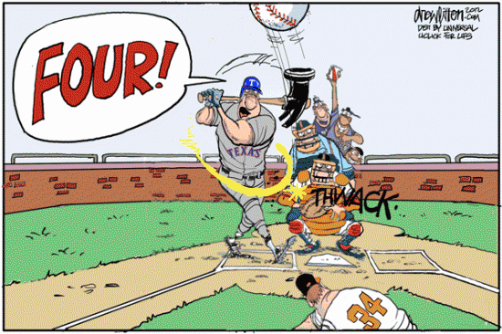2. I was just in the Dallas area. Got to see the Yankees play at Ranger Stadium, Darvish pitched for the Rangers. Beautiful park, beautiful evening, great pitching from both pitchers. When the fans chant Yu, it sounds like cows mooing…… Went to Dealey Plaza and the Book Depository, very sobering. Drew, check out a restaurant in the Stockyards, H3 and Booger Red’s Bar. I think they have nothing better to do with all that space but build freeways, fascinating. Josh Hamilton, what a night! What a hitter!