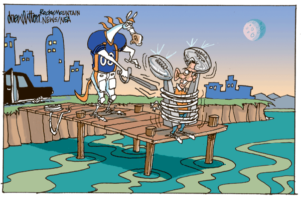 On a side note, two thoughts. #1 John Elway running things may not be a bad idea. After all he took the Colorado Crush Arena football team from expansion to Champions in a short amoutn of time. While not exactly the NFL that is still impressive. #2 Your recent cartoon about owners making their couches walk the plank is still fresh in my mind. Do you have some sort of fixations with priates (RRRRR Matey)?