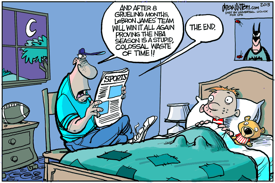 Yet another reason I’m not a big fan of the NBA. They don’t play defense, they loaf through the season and LeBron wins. Every time. What’s the point really? I’d rather watch Duck Dynasty reruns. Even those have more surprise endings than an NBA season.