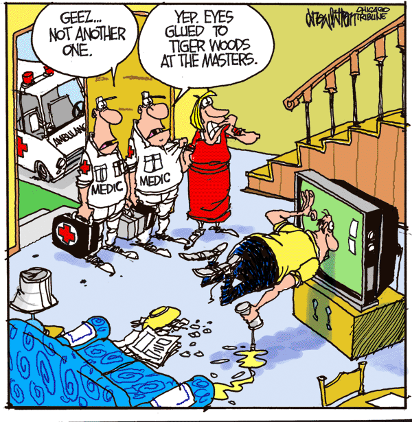 Here’s one for you Sunday Morning Breakfast. A little fun about watching the Masters fresh from Saturday mornings Chicago Tribune. I’ll be drawing a cartoon after the Masters tomorrow night as well for ESPN.com’s commentary page. Be sure to stop by.